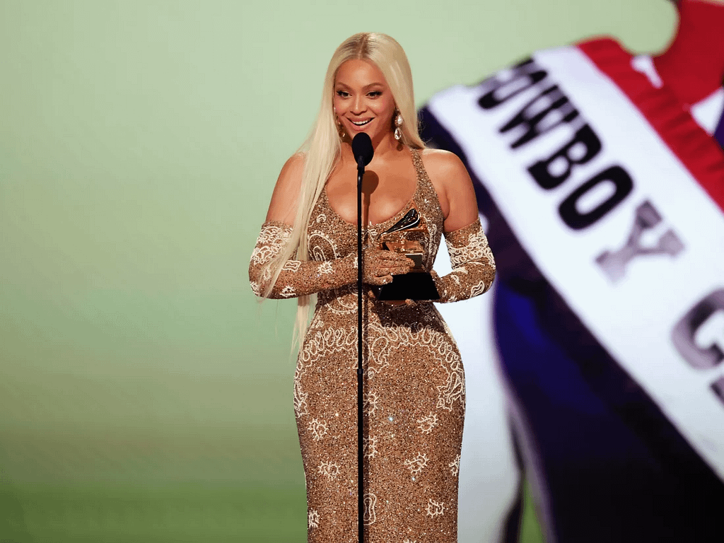 The first album of the year win for COWBOY CARTER marks a new career-defining milestone for Beyoncé. She holds the record for being both the most nominated and most awarded artist in Grammy history. She accepted the award presented to her by Los Angeles county firefighters. She dedicated the historic win to country music pioneer Linda Martell. Beyoncé also won best country duo/group performance for her song “II Most Wanted” ft. Miley Cyrus. Earlier in the night, Bey appeared genuinely bewildered. She accepted the Grammy for best country album. This came after she was notably shut out of the Country Music Association Awards last year.